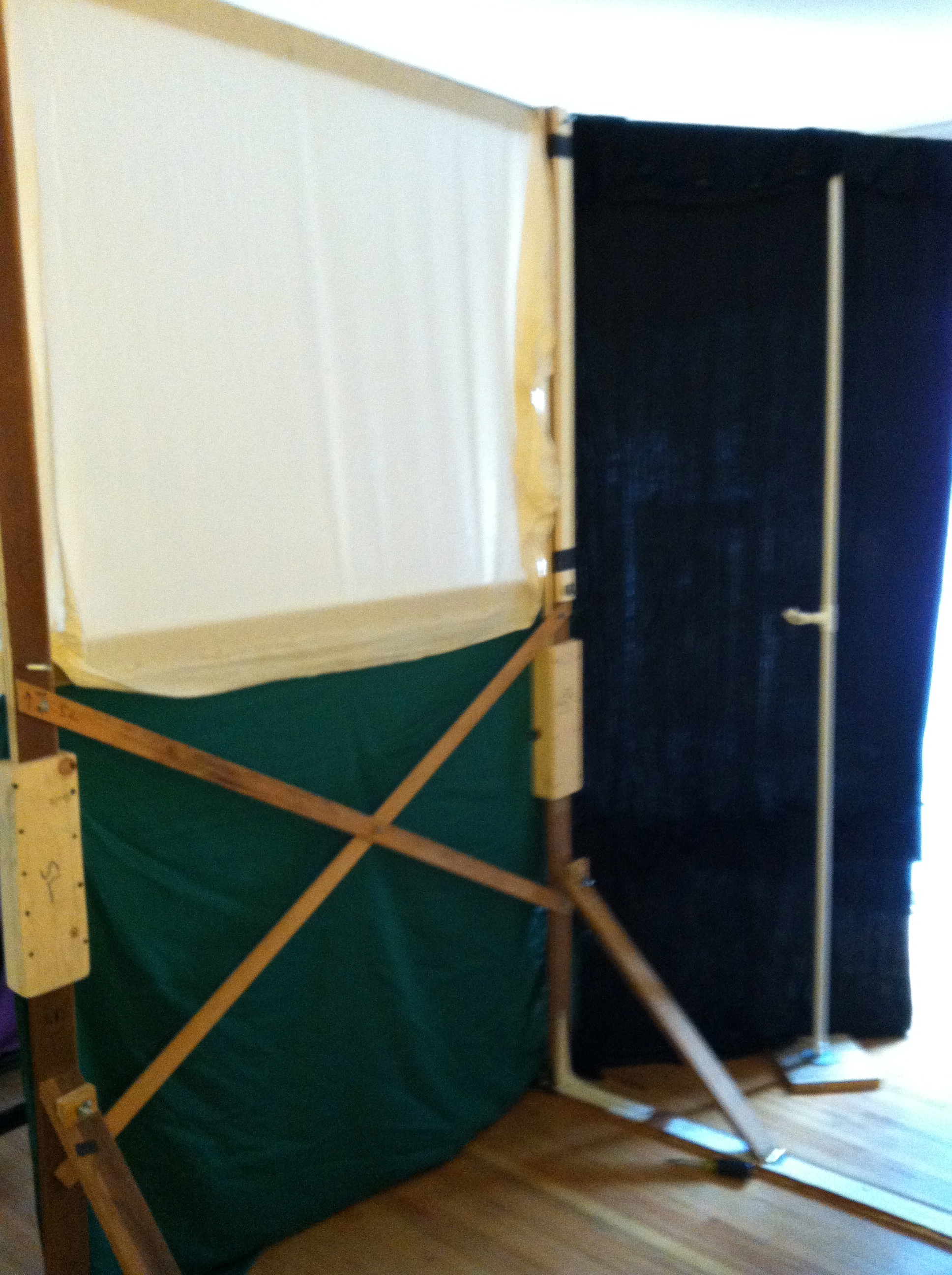 Genna also found a bag that is intended for boat sails, but works just as well for all the wood and PVC pieces of this stage. Hooray for not having to make ten different trips carrying pieces into the theater for shows! Here she is modeling: