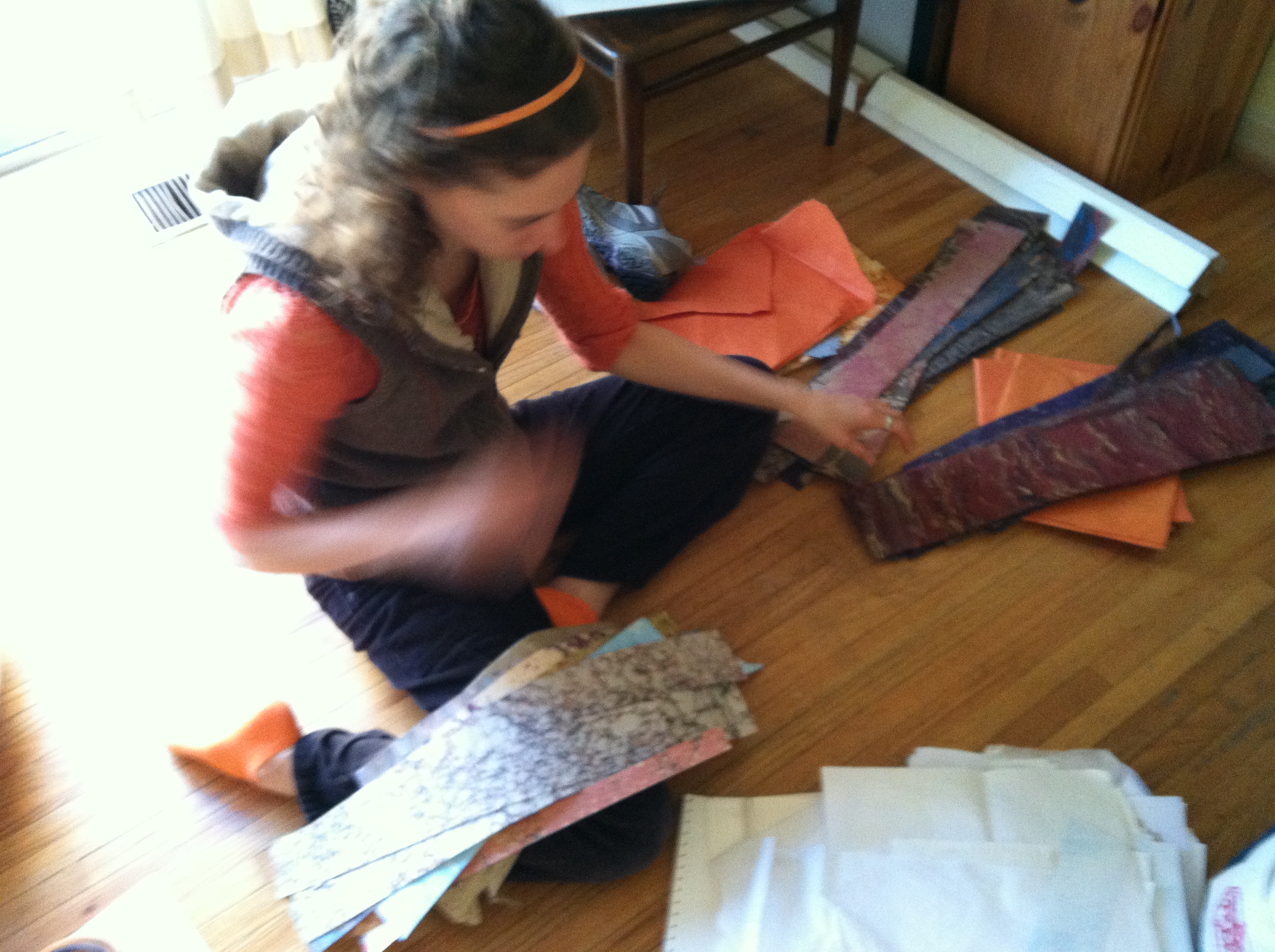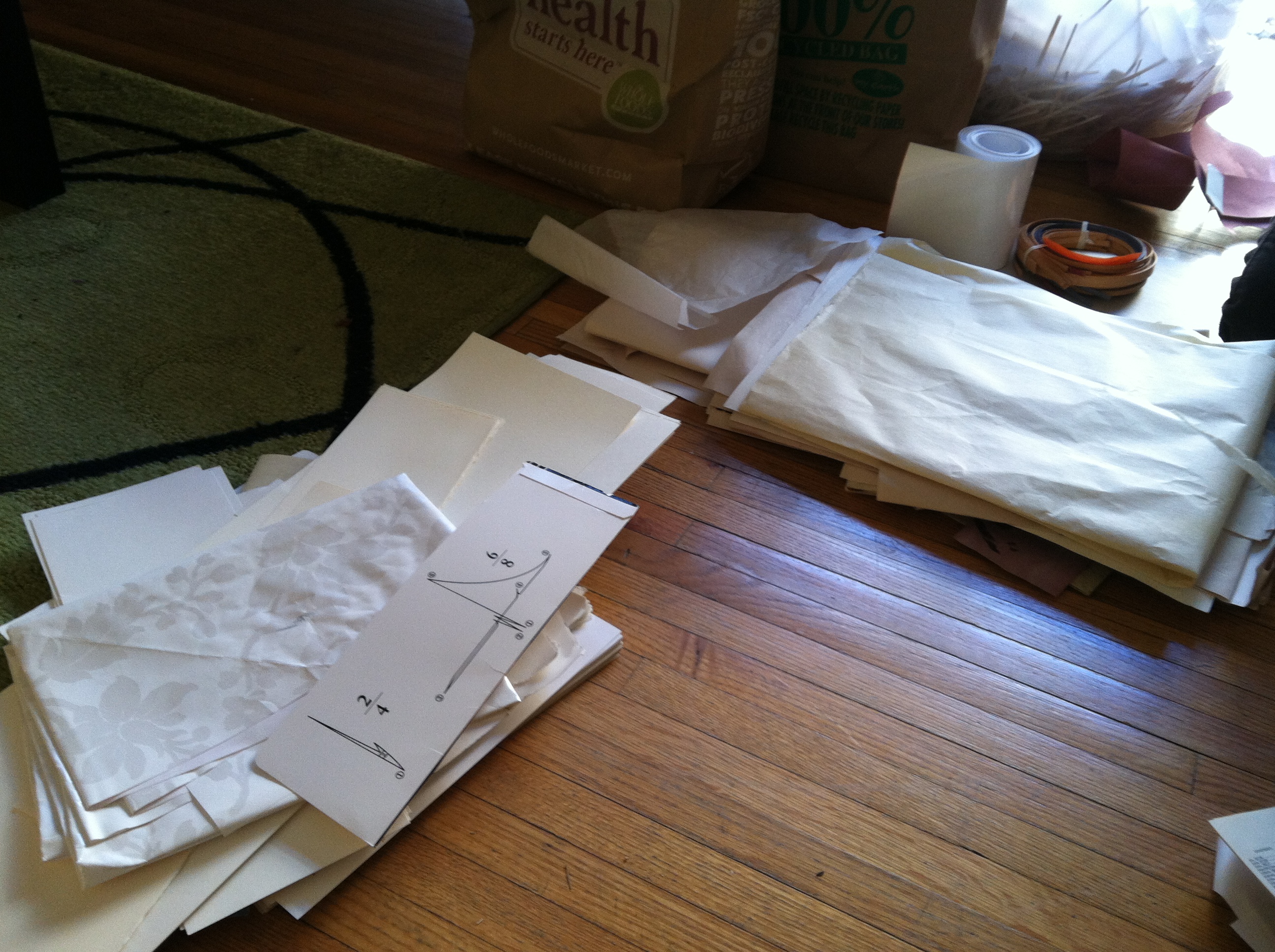 As we continue to build paper puppets for Cabinets of Kismet, the materials have started to overflow and as a result, the first floor of my house was rapidly getting submerged in scraps. Genna and I spent part of President’s Day getting it all organized by color and weight.